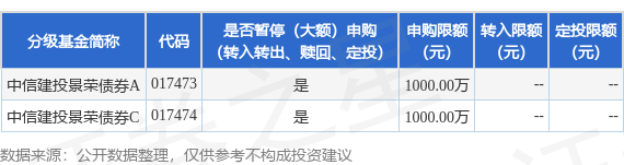 本站消息第一配资门户,10月31日中信建投基金管理有限公司发布《中信建投景荣债券型证券投资基金暂停大额申购(含大额定期定额投资)公告》。公告中提示,为保护基金份额持有人的利益,基金管理人决定将2025年11月03日至2025年11月28日的该基金申购(含定期定额投资)业务设置最高限额,自2025年11月3日起中信建投景荣债券型证券投资基金暂停大额申购(含大额定期定额投资),下属分级基金调整明细如下: